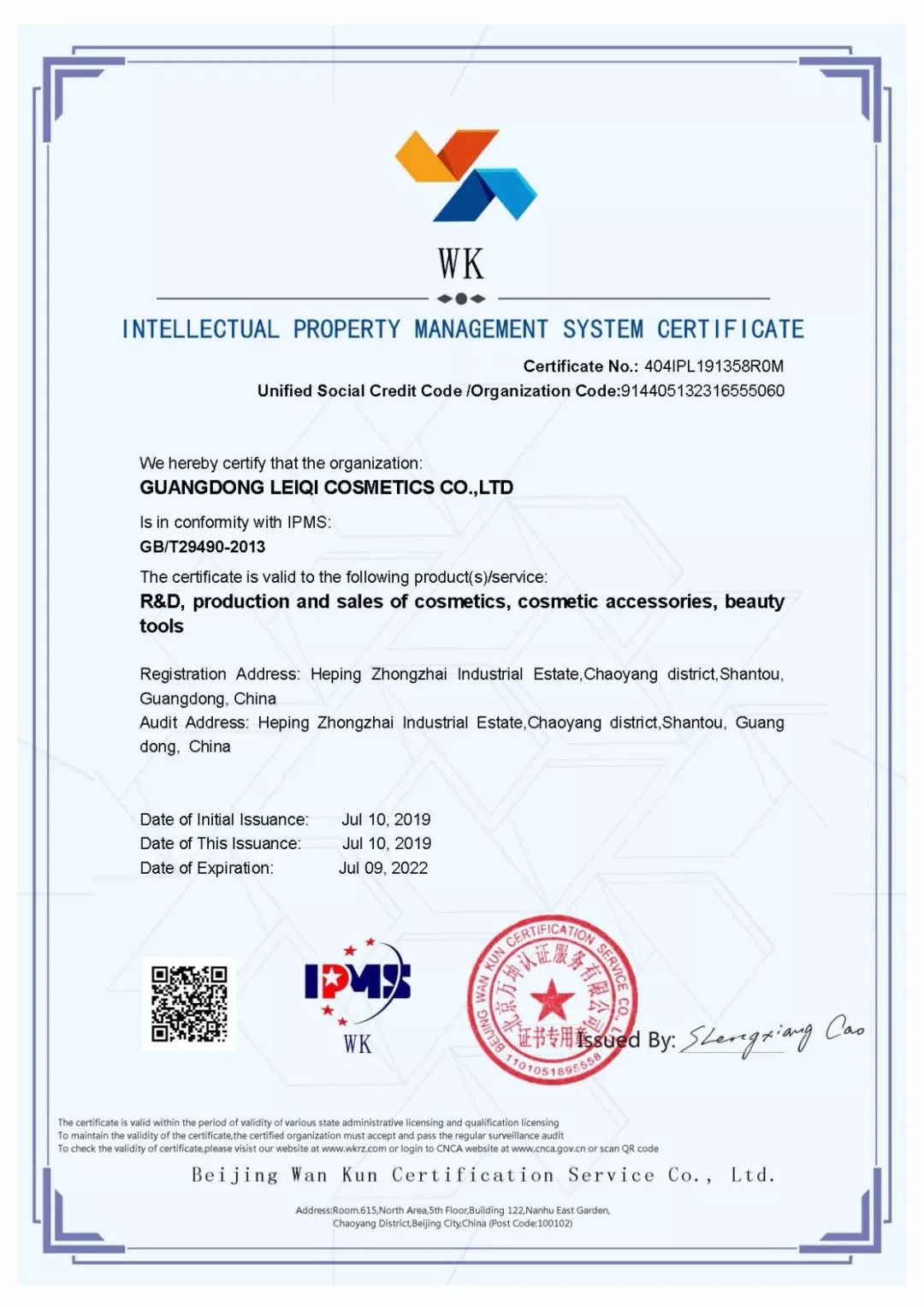 廣東蕾琪化妝品有限公司是較早一批重視商標(biāo)品牌建設(shè)、知識(shí)產(chǎn)權(quán)制度運(yùn)用較好的企業(yè);企業(yè)注重塑造發(fā)展企業(yè)品牌文化,分別擁有眾多國(guó)內(nèi)外注冊(cè)商標(biāo),制定出臺(tái)商標(biāo)管理辦法(制度),并通過了知識(shí)產(chǎn)權(quán)管理體系審核,獲得《知識(shí)產(chǎn)權(quán)管理體系認(rèn)證證書》(證書編號(hào):404IPL191358R0M)。企業(yè)積極運(yùn)用各類媒體渠道對(duì)企業(yè)品牌進(jìn)行全方位宣傳推廣,在市場(chǎng)上擁有較高的知名度和品牌影響力,為經(jīng)濟(jì)發(fā)展作出了較大的貢獻(xiàn)。